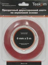 Лента двусторонняя TESKOM акриловая рулон 5м толщина 1мм прозрачная