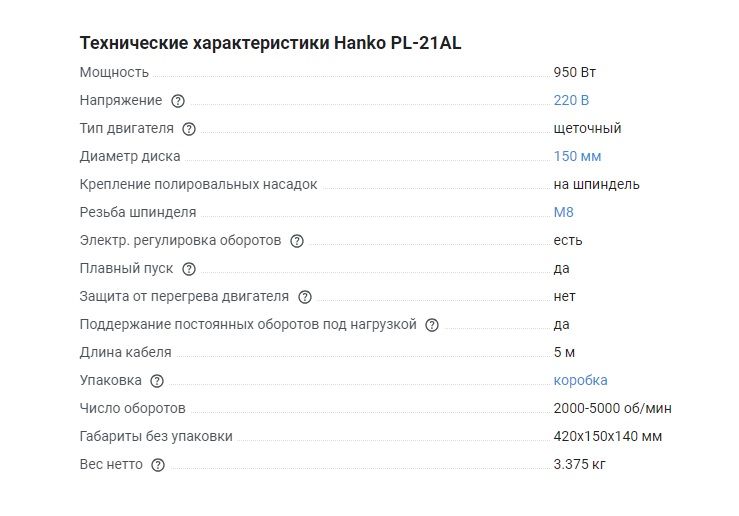 Машинка полировальная HANKO PL-21AL электрическая угловая D150мм
