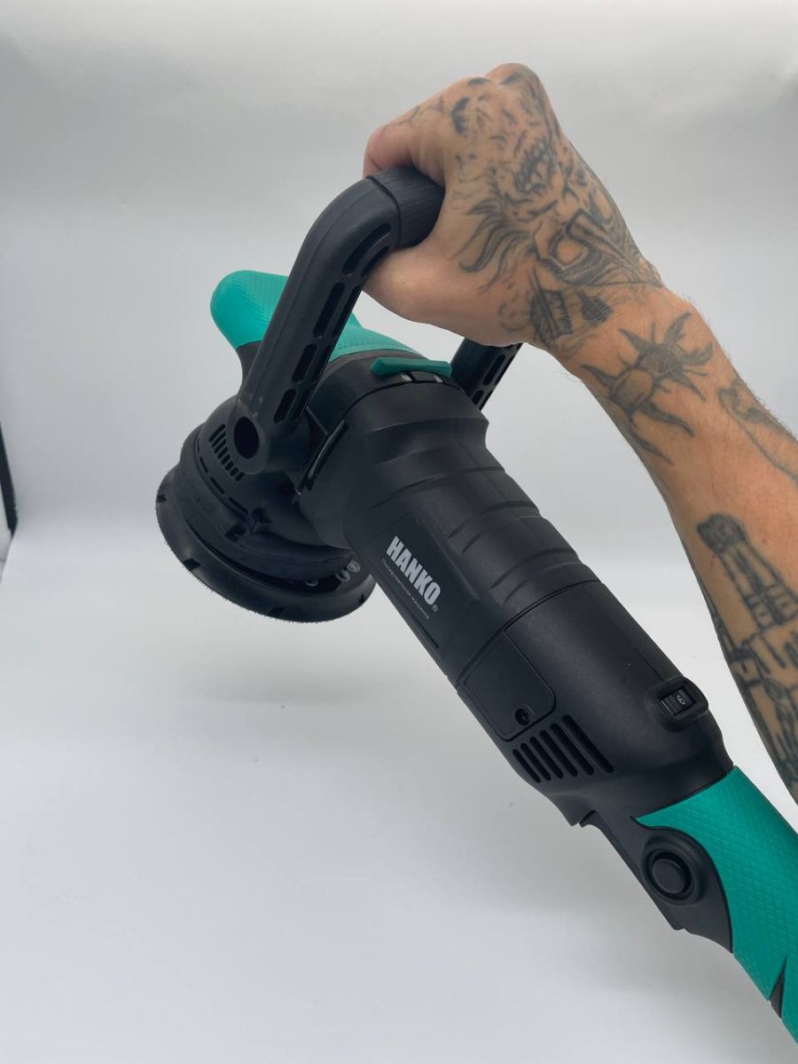 Угловая электрическая полировальная машинка с вращательно-орбитальным типом движения HANKO PL-21AL. Легкая, малогабаритная, идеально сбалансированная машинка с орбитальным ходом 21 мм и подошвой 150 мм идеально подойдет для полировки любой поверхности, даже большой площади. Прорезиненная передняя рукоятка и резиновые вставки в корпус инструмента обеспечивают комфортную работу оператора. Наличие 2-х ручек (скоба и боковая) дает возможность максимально настроить машинку для всех видов работ.