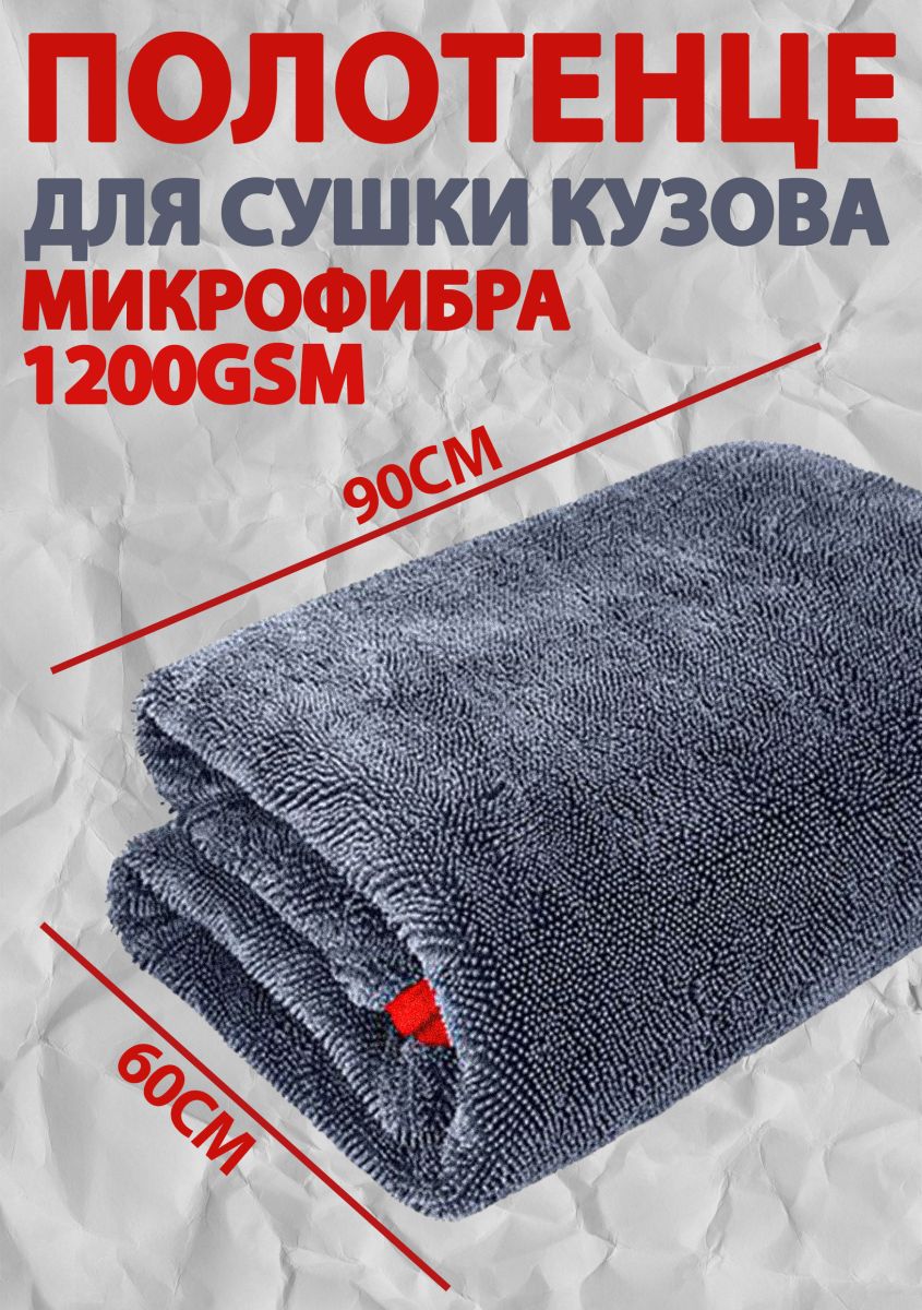 Полотенце для сушки кузова Microfiber 600GSM 60*90см серая/черная окантовка