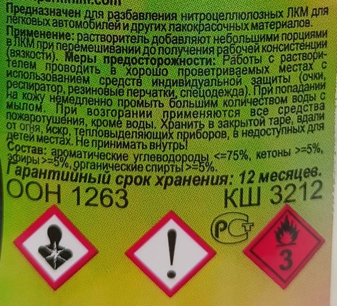 Применяется для разбавления нитроцеллюлозных ЛКМ.