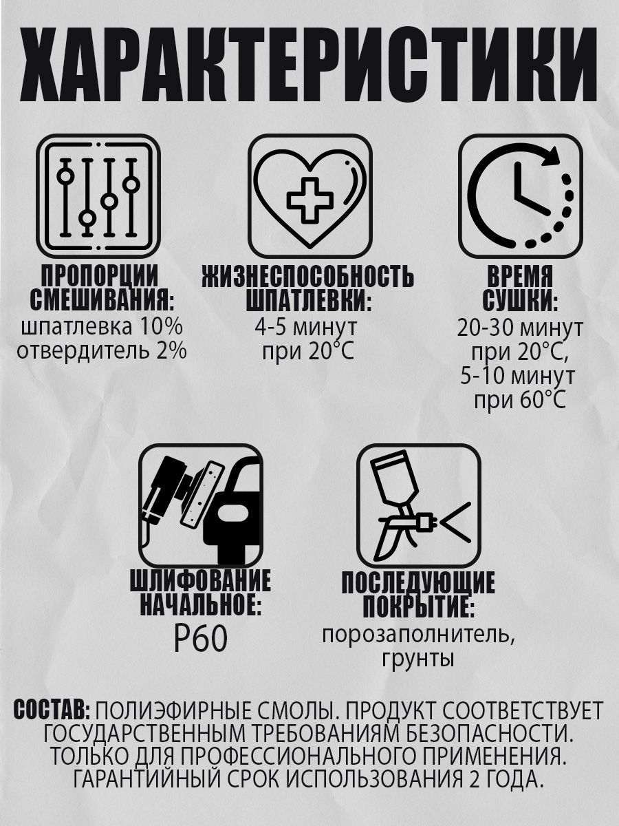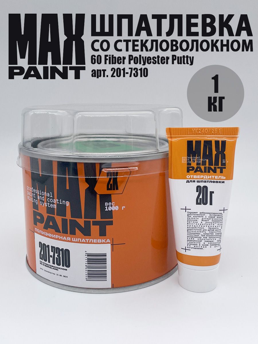 Шпатлевка со стекловолокном MAX PAINT 60 Fiber Polyester Putty 1,0кг