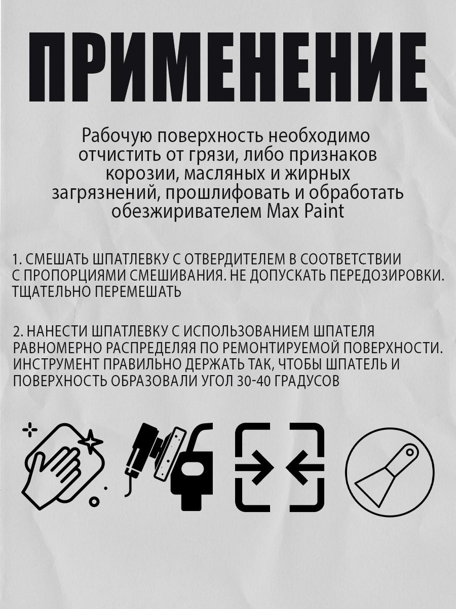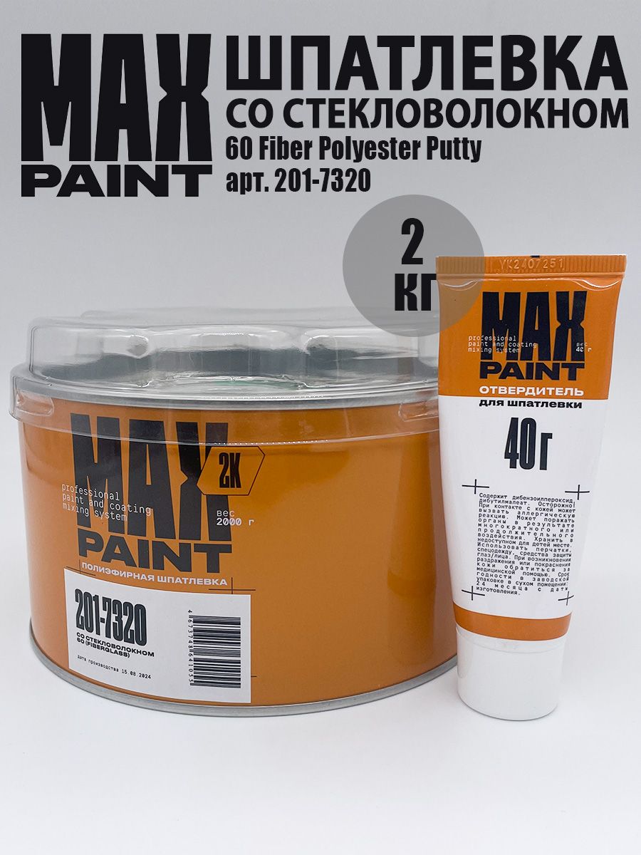 Шпатлевка со стекловолокном MAX PAINT 60 Fiber Polyester Putty 2,0кг